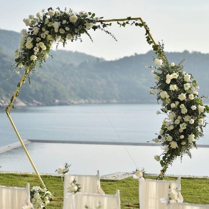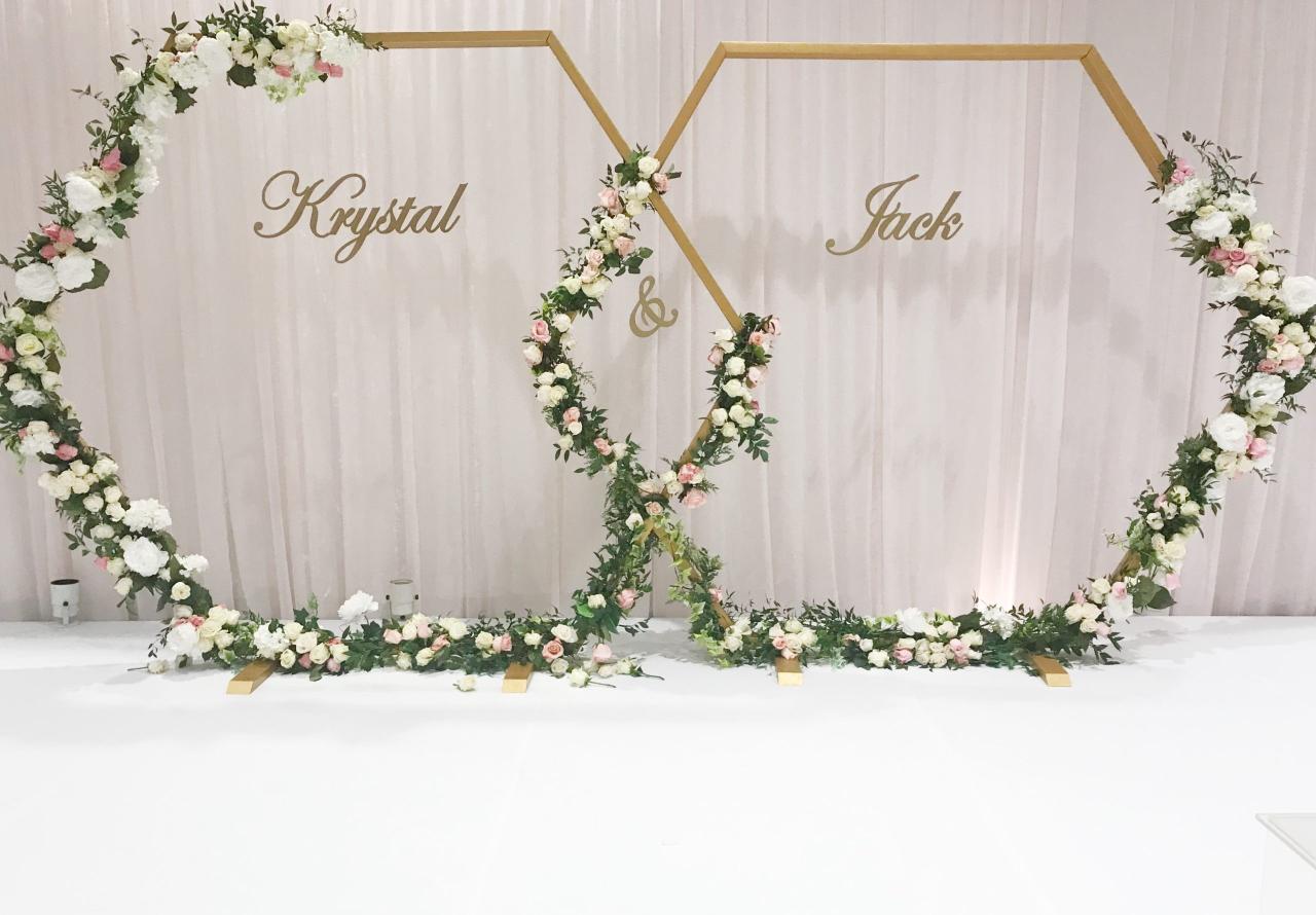 Make a bold modern statement with our Gold Hex Arch, it is the perfect fusion of geometric design and luxury styling. These sleek metallic frames create a stunning architectural focal point for ceremonies, sweetheart tables, photo backdrops, corporate branding moments, and immersive event installations. Their clean hexagon shape brings contemporary elegance to any aesthetic romantic, modern, industrial, garden, boho, or opulent glam.