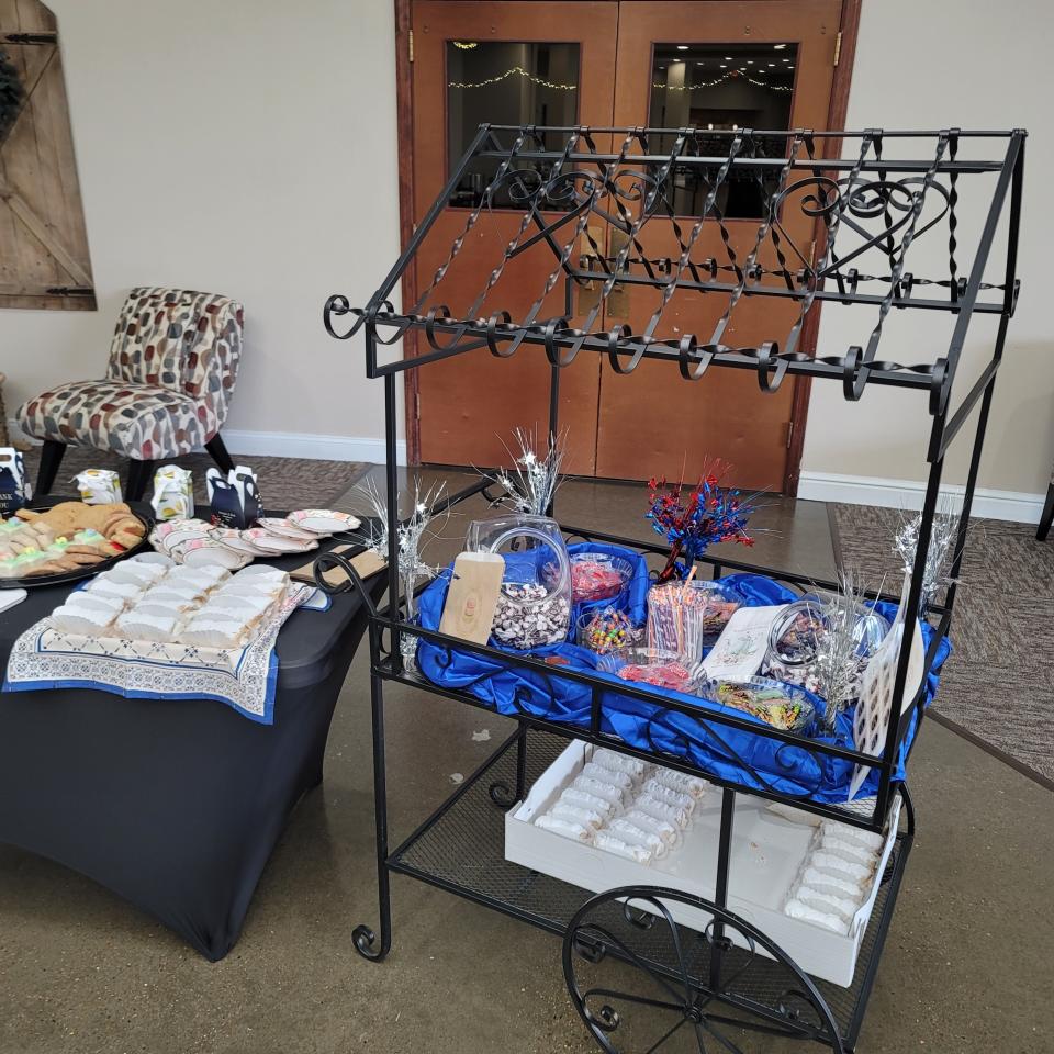 Ideal for weddings, corporate events, holiday celebrations, showers, and branded activations, this cart creates a refined focal point that feels intentional and curated. Whether styled minimally or fully dressed with florals, signage, and service pieces, the Black Wrought Iron Coffee and Tea Cart Large brings elegance, movement, and visual interest to any event environment.
