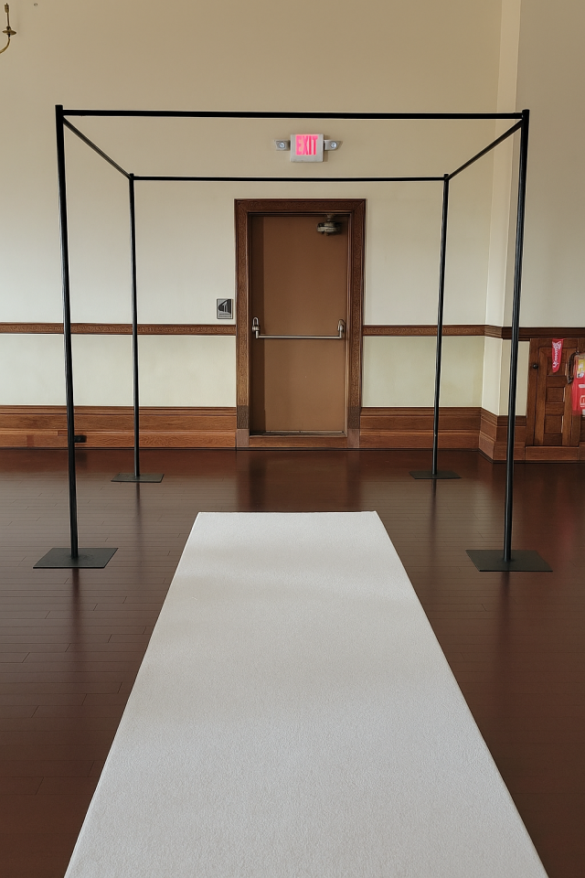 This versatile design complements both modern ballrooms and classic venues, offering a crisp yet dreamy aesthetic that photographs beautifully. Whether placed beneath vaulted ceilings, inside elegant museums, or in bright natural-light spaces, this canopy elevates every “I do” moment with understated luxury.