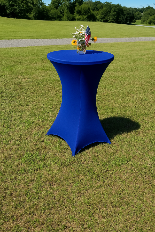 The Royal Blue Spandex Cocktail Table Cover adds a bold and sophisticated pop of color to your event space. Its stretch-to-fit design creates a sleek, tailored look that instantly elevates cocktail tables, making them a polished part of your décor. Perfect for weddings, corporate galas, milestone celebrations, and showers, the rich royal blue hue pairs beautifully with metallics, crisp whites, or jewel-toned palettes. The Royal Blue Spandex Cocktail Table Cover brings both style and energy, ensuring your tables are as eye-catching as the rest of your event design.