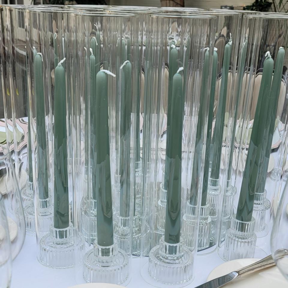 Elevate your tablescape with the timeless sparkle of our short crystal taper candle holders. Their low profile makes them ideal for shower centerpieces, guest tables, or dessert displays, adding a soft glow without blocking conversation. Perfect on their own or mixed with taller styles for dimension, they bring just the right touch of elegance to baby showers, bridal showers, and intimate celebrations.