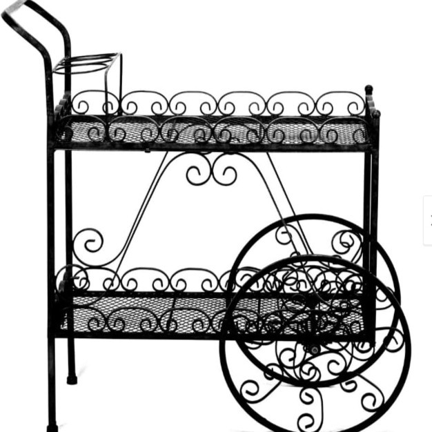 Black Wrought Iron Coffee and Tea Cart