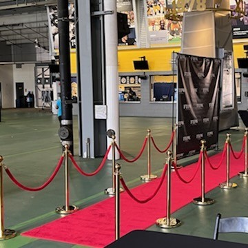 Create a VIP entrance with our red velvet stanchion rope rental in Pittsburgh. Perfect for galas, weddings, corporate events, red carpet moments, and grand openings. NFL Draft VIP Areas